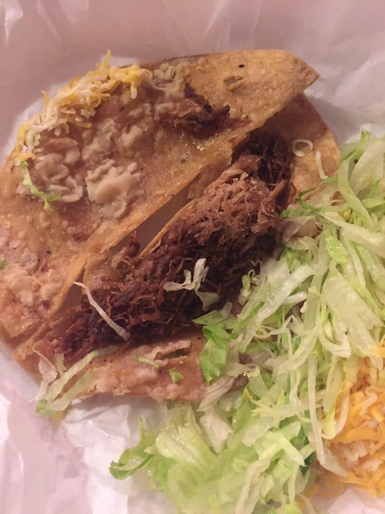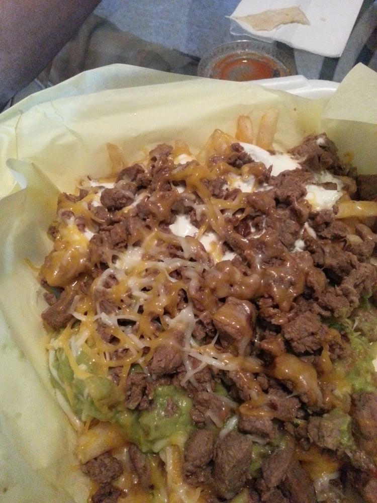 Great food! I always get the Carne Asada fries with extra cheese. Large portion and tastes great! Every now and then I'll get an order of Taqitos or a Shredded beef taco. Both are good, tacos are big. Salsa isn't bad, drive thru service is good. Can take a while sometimes, but well worth the wait. It's another one of the many Alberto's knock-offs around... But it's way better than Alberto's in my opinion!
